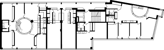 Wie bereits angedeutet verfügt die Raumbildung über landschaftliche Qualitäten. Dabei haben wir verschiedene Motive synthetisiert, die wir in den vergangenen Jahren in zahlreichen Wohnungsbauten entwickelt haben: Allem voran die Idee zirkulärer Bewegungsformen, die im Falle der einen Wohnung mit dem mittigen Patio fast zwingend erscheint. Voraussetzung hierfür ist die Mehrfacherschließung von Zimmern. Tatsächlich verfügen alle Räume über mindestens zwei, teilweise auch drei Türen. Die zahlreichen Türen ergeben nicht nur Großzügigkeit und Wahlmöglichkeit in der Bewegung, sondern schaffen auch visuell große Weiten, wie man sie von Enfiladen kennt. In den Wohnräumen an der Weststraße überlagern sich dabei „flache Diagonalen“ mit Längs- und Querfluchten. Schließlich erhalten innere Schwellenräume eine hohe Bedeutung. Es bestehen verschiedene Vor- und Zwischenräume sowie Nischen vor Türen, die die Raumübergänge regulieren und die Zimmer entsprechend ihrer Lage und Bedeutung privatisieren.