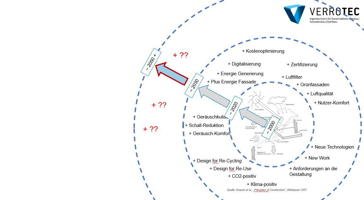 Die Erschaffung einer echten Kreislaufwirtschaft ist ein gemeinsames Ziel bei der Weiterentwicklung der Fassadentechnik. In aktuellen Projekten steht die Entwicklung allerdings noch am Anfang und ist längst noch kein Planungsalltag! Trotzdem erweitert sich die Liste der Anforderungen an die Gebäudehülle um weitere Themen und der Fachplaner muss auch hier zum Spezialisten werden.