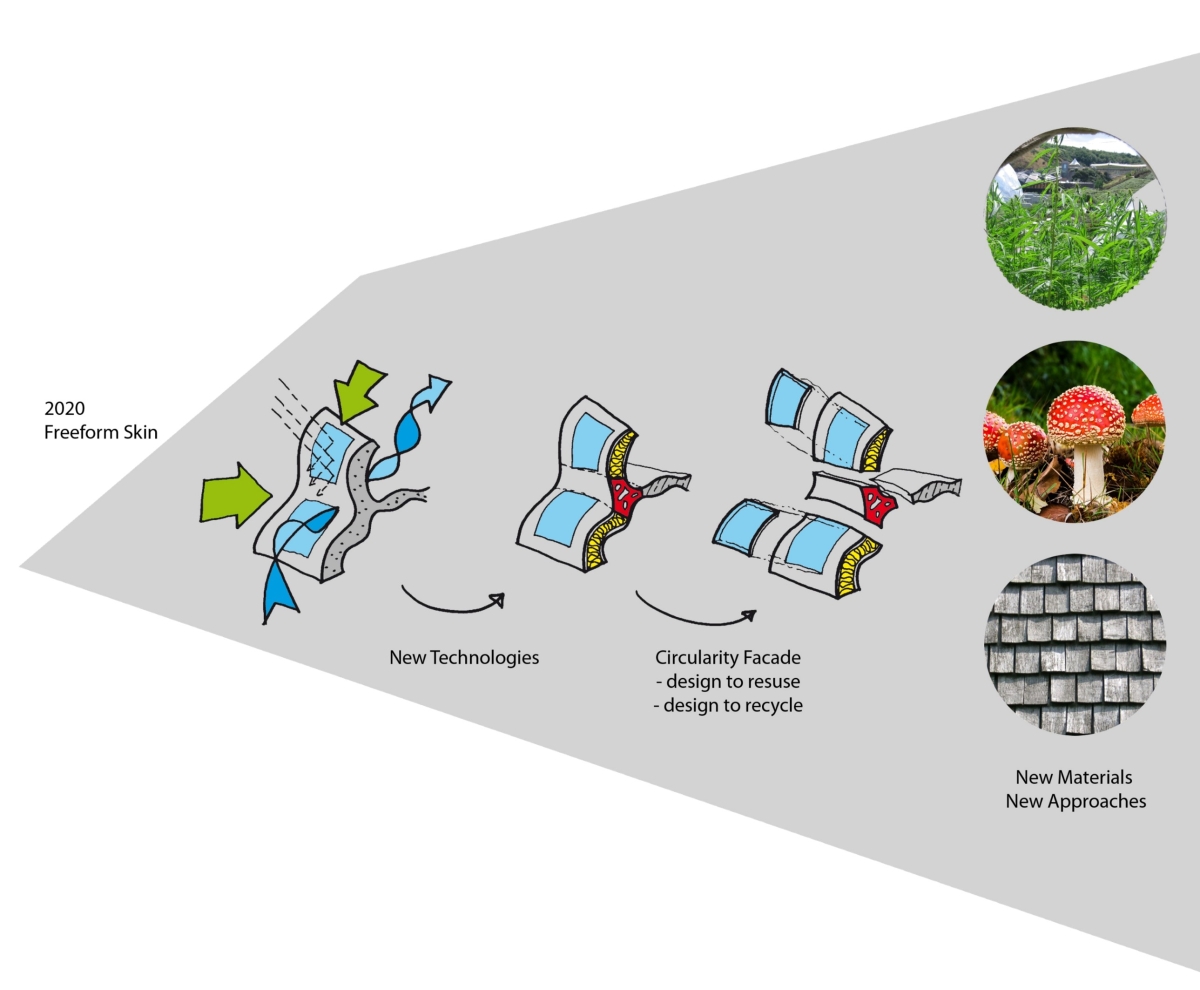 Was ist, was war, was kommt? Um das Potenzial der Fassade zu entwickeln reicht es nicht aus, bestehende Anforderungen und technische Lösungen als Maß der Dinge zu begreifen. Neue Aufgaben benötigen neue Materialien und den Mut, in Kreisläufen zu denken.