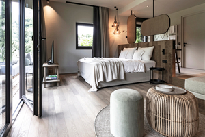 Im Inneren der großzügigen Gartensuiten und -lofts spielt die Natur eine wichtige Rolle. Viel Holz, Textilien aus Naturfasern und erdige Farbtöne bestimmen das harmonische Interieurkonzept. Dazu passen die Holzböden von Bauwerk Parkett. „Für uns stand von Anfang an fest, dass es ein echter Holzboden sein soll“, erzählt Hotelinhaberin Maria Pichler. „Das Parkett ist wertig und ansprechend und vermittelt den Gästen mit jedem Schritt Natürlichkeit und Wohngesundheit.“ Die Architekten von noa* ergänzen: „Das Parkett gibt den Zimmern ein unvergleichliches Gefühl von Wärme.“