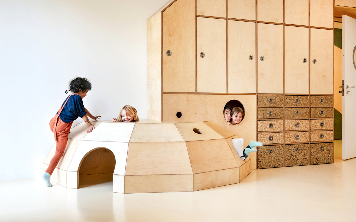 Wo Kinder sich frei bewegen sollen, kommt es auf das Detail an. Das gilt insbesondere für die Innenräume von Kindergärten. Eine Raumerkundung zwischen Pädagogik, Sicherheit und Gestaltung.
