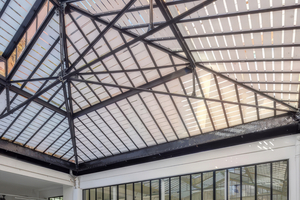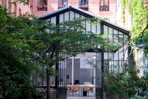 Der Glasanbau aus den 1930er-Jahren, der das ehemalige Designstudio von Wilmotte & Industries in der Rue de Charonne 59 im 11. Arrondissement von Paris prägt, wurde umfassend thermisch und akustisch ertüchtigt. Die Sanierung schlägt eine Brücke zwischen dem baukulturellen Erbe des Gebäudes und modernen Anforderungen an Komfort, Nutzung und Langlebigkeit.Durch die Neuverglasung mit Fineo Vakuumisolierglas wurde dabei bauphysikalische Standards eingehalten, ohne die bestehende Unterkonstruktion zu verändern. Die Art déco-Glasfassade des ehemaligen Designstudios Wilmotte & Industries basiert auf einem Zusammenspiel von Glas und Metall, bedurfte jedoch einer Anpassung an die heutigen energetischen und akustischen Anforderungen. Da die Eigentümergemeinschaft das historische Erscheinungsbild bewahren wollte, wurden die T-Metallträger der Unterkonstruktion saniert und mit Fineo-Verglasung ausgestattet. Dank der geringen Aufbauhöhe des Systems konnte die originale Struktur erhalten bleiben. Bei größeren Scheiben mit Abmessungen von mehr als 40 x 150 cm kamen keramische Warme-Kante-Abstandhalter zum Einsatz, die den Schutz vor Glasbruch sowie vor möglichen Einwirkungen von außen gewährleisten. Die Umsetzung übernahm Verre & Métal, ein seit 1921 etabliertes Unternehmen mit Expertise im Glas- und Metallbau. Zum Zuge kam Fineo 8, laminiert mit 4 mm klarem Einscheiben-Sicherheitsglas (ESG). Die zentrale Innovation der Fineo-Verglasung liegt in dem versiegelten, vakuumierten Raum von nur 0,1 mm Dicke zwischen zwei Glasscheiben, der sowohl eine hohe Energieeffizienz als auch eine beachtliche Schlankheit ermöglicht. Der Vakuumzwischenraum reduziert den Wärmeaustausch zwischen den beiden Scheiben und sorgt für eine Wärmedämmung mit einem Ug-Wert von 0,7 W/(m²K) bei einer Gesamtdicke von 6,7 mm in der Minimalversion. Gleiches gilt für die Schalldämmung, gemessen am Schalldämmwert Rw, der in den Standard-Konfigurationen 36 dB erreicht und in der Verbundglasausführung mit dem Schallschutzglas Stratophone von AGC bis zu 45 db. Labortests bestätigen eine thermische und akustische Integrität von über 60 Jahren. Der Hersteller AGC hat zudem für seine Vakuum-Isolierverglasung Fineo die CE-Kennzeichnung und anschließend die allgemeine Bauartgenehmigung (aBG) des DIBT erhalten. Weiter kommt die Vakuum-Isolierverglasung mit der Umweltproduktdeklaration in der INIES-Datenbank und mit niedrigen CO₂-Werten von bis zu 18,9 kg/m² in der Low-Carbon-Version.