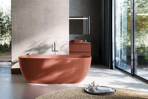 Die Amiata Badmöbelkollektion der Marke Karol von Ronal Bathrooms bietet individuelle Konfigurationen sowie eine breite Farbauswahl. Die Kollektion kommt mit klaren Linien und nahtloser Monoblock-Struktur für den Waschtischschrank mit dezent integriertem Griff. Dieser ist zudem in verschiedenen Größen und Schubladenkonzepten mit einem oder zwei Schubladen erhältlich. In der Farbpalette stehen sechs matte Farbtöne, Grigio Corda, Terra d‘Ombra, Grigio Ardesia, Blu Oceano, Salvia und Terracotta zur Verfügung sowie weitere 27 Farben oder individuelle RAL Töne mit glänzenden oder matten Oberflächen.