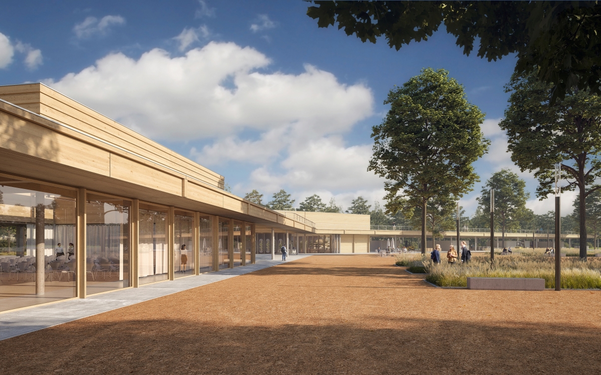 In Hille im Kreis Minden-Lübbecke, am äußersten Rand von NRW, treffen unterschiedlichste Abfall- und Recyclingprozesse aufeinander. Jährlich werden hier ca. 300 000 t Abfälle und Sekundärrohstoffe verarbeitet – ein realer Ausschnitt der gesamten Wertschöpfungskette der Abfallwirtschaft. Aus dieser Ausgangslage entwickelte die Entsorgungswirtschaft Minden-Lübbecke (EMiL) die Vision, den Standort zu einem regionalen Kompetenz- und Innovationszentrum der Kreislaufwirtschaft auszubauen. Das architektonische Konzept für die bauliche Forschungsinfrastruktur entstand im Rahmen eines Wettbewerbs, den kleyer.koblitz.letzel.freivogel Architekten (Berlin) gemeinsam mit bbz landschaftsarchitekten (Berlin) gewannen.