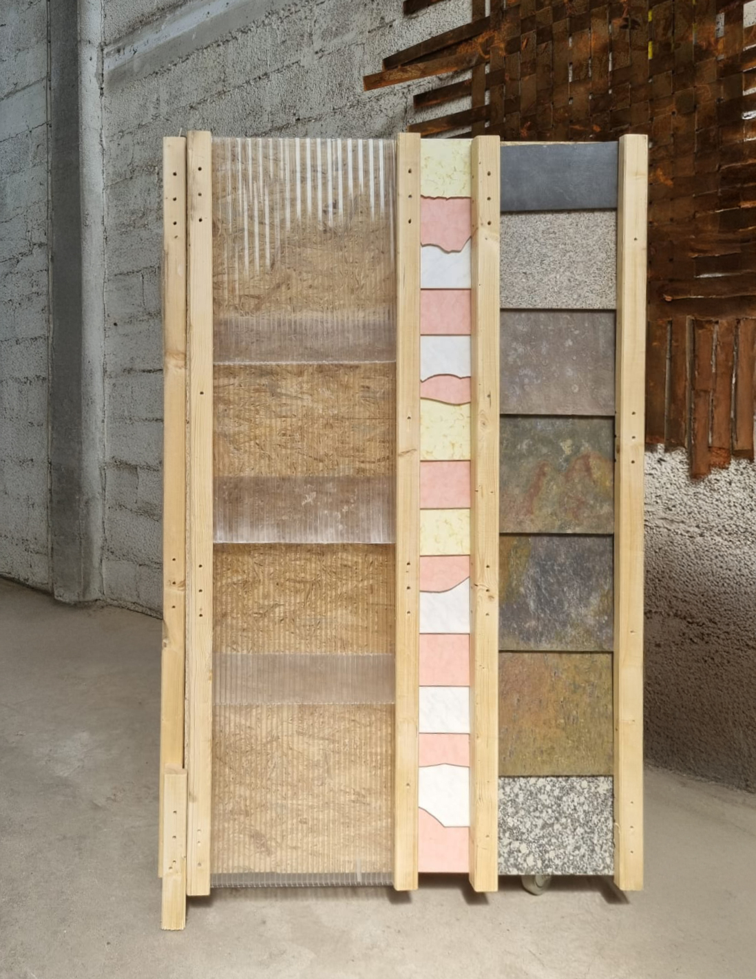 Im Gegensatz zu neu produzierten Materialien bilden übrige Materialien eine zufällige und heterogene Sammlung. Oft sind es kurze Abschnitte oder Fragmente, deren Kanten unregelmäßig gebrochen sind. Sie weisen Narrative in Form von Gebrauchs-, Witterungs- und Alterungsspuren auf, wie wir sie auch bei Bestandsgebäuden feststellen können.