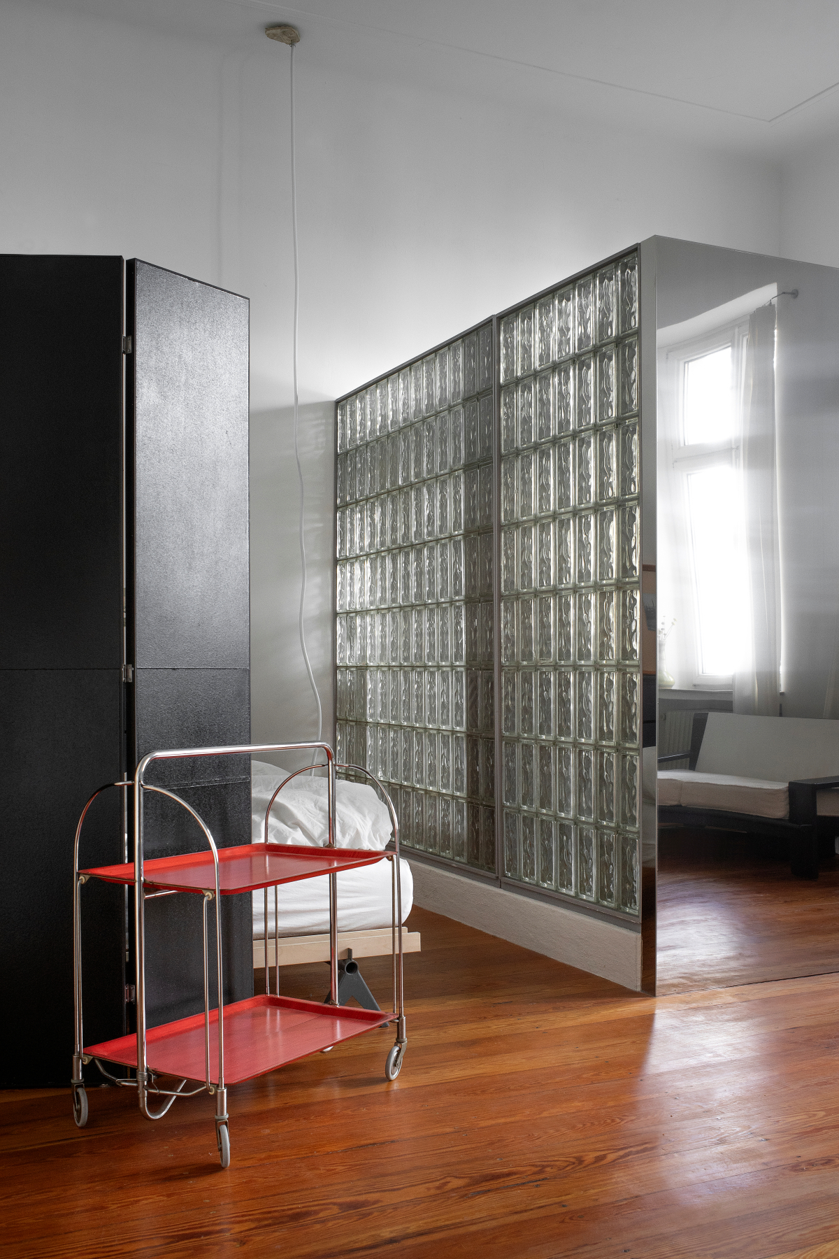 noda studio: wiederverwendete Glasbausteine in Holz-Stecksystem