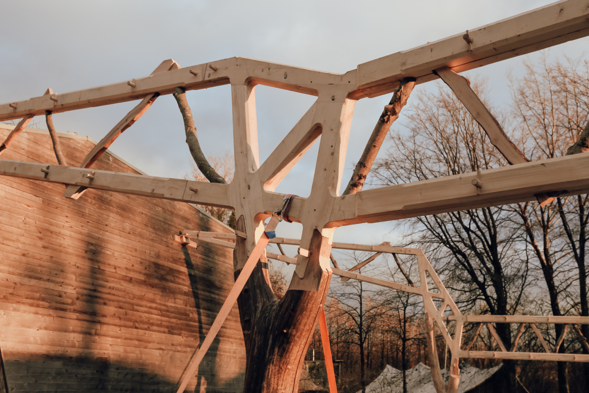 AA Design & Make: krumme Äste als diagonale Streben in Fachwerkträgern