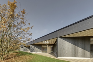 Damit kommt eine weitere Realität ins Spiel, die in diesem Fall auf die großen Ambitionen des Auftraggebers in Sachen Nachhaltigkeit zurückzuführen ist. Angestrebt war von vornherein eine DGNB-Zertifizierung, womit Technik, Material und nicht zuletzt die gute Gestaltung von entsprechender Bedeutung waren. Tatsächlich wird die Lüftung pro Gruppenraum separat geregelt und die dafür nötige Technik in den Einbauschränken samt perforierter Akustikoberfläche verborgen. Zu bedenken ist dabei, dass eine DGNB-Zertifizierung bauphysikalisch eine kontrollierte, mechanische Lüftung voraussetzt und eine händische Lüftung erstmal ausschließt.