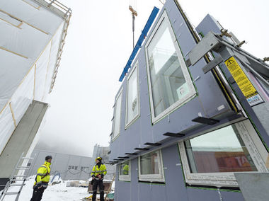 Auf dem Firmengelände des Unternehmens für Verfahrenstechnik Orafol in Oranienburg fehlten Büroarbeitsplätze. Es bot sich an, ein bereits auf dem Fimengelände bestehendes Gebäude umzubauen. Das Dachgeschoss des Zweispänners beherbergte bis dahin lediglich einen improvisierten Seminarraum. Nach Plänen des Architekten Klaus Hagebusch ließ der Bauherr die obere Etage in offene Büroräume umbauen. Den Bauherrn überzeugte insbesondere das Akustikkonzept des Architekten. Dadurch sollte die Nachhallzeit in den Büroräumen minimiert und die Sprachverständlichkeit nach dem Umbau verbessert werden. So wurden Wände durchbrochen und damit die Etage, die bislang von einer sehr kleinteiligen Raumaufteilung geprägt war, in ein Großraumbüro verwandelt.