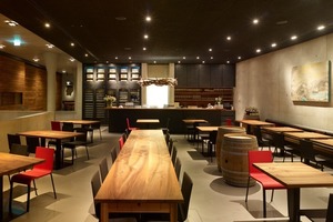 Damit ist das dreidimensionale Diagramm des Hauses erklärt: Auf der oberen Ebene liegt die Anlieferung, die über einen kleinen Innenhof läuft. Der mutiert sommertags zu einem schönen Outdoor-Musiktheater mit nachgewiesenen guten akustischen Qualitäten, was sich inzwischen bis zum Südwestrundfunk herumgesprochen hat. Im Innern dieser oberen Ebene liegen die Traubenannahme mit Förderbändern und Sortiertischen, darunter Traubenkühlräume für bestmögliche Bedingungen für die Verarbeitung der Trauben. Nur etwa sechs Wochen braucht man diesen Bereich in seiner eigentlichen Bestimmung. Deswegen hat die Winzerfamilie Keller eine weitere Nutzung als Eventbereich vorgesehen und so kommt es, dass keine wichtige Hochzeitgesellschaft im Breisgau nicht zumindestens anfragt, ob sie hier feiern kann. Daneben liegt das „Keller-Restaurant“, dessen Küche und Facilities entsprechend gut ausgenutzt werden können. Darunter dann die Pressen, Maischegärung, Holzcuvées sowie der Weinverkauf mit Nebenräumen. Unten sind die Sedimentationstanks, das Edelstahl-Tankkeller und das Holzfasskeller durch eine Lichtinstallation so inszeniert, dass sie bei internen Führungen ganz großes „Weintheater“ geben. Die Hanglage macht es möglich, dass der „Weinladen“ einen direkten, nach vorn gelegenen Eingang hat. Man spürt überall, dass der Architekt die Regie des Hanges verstanden hat.