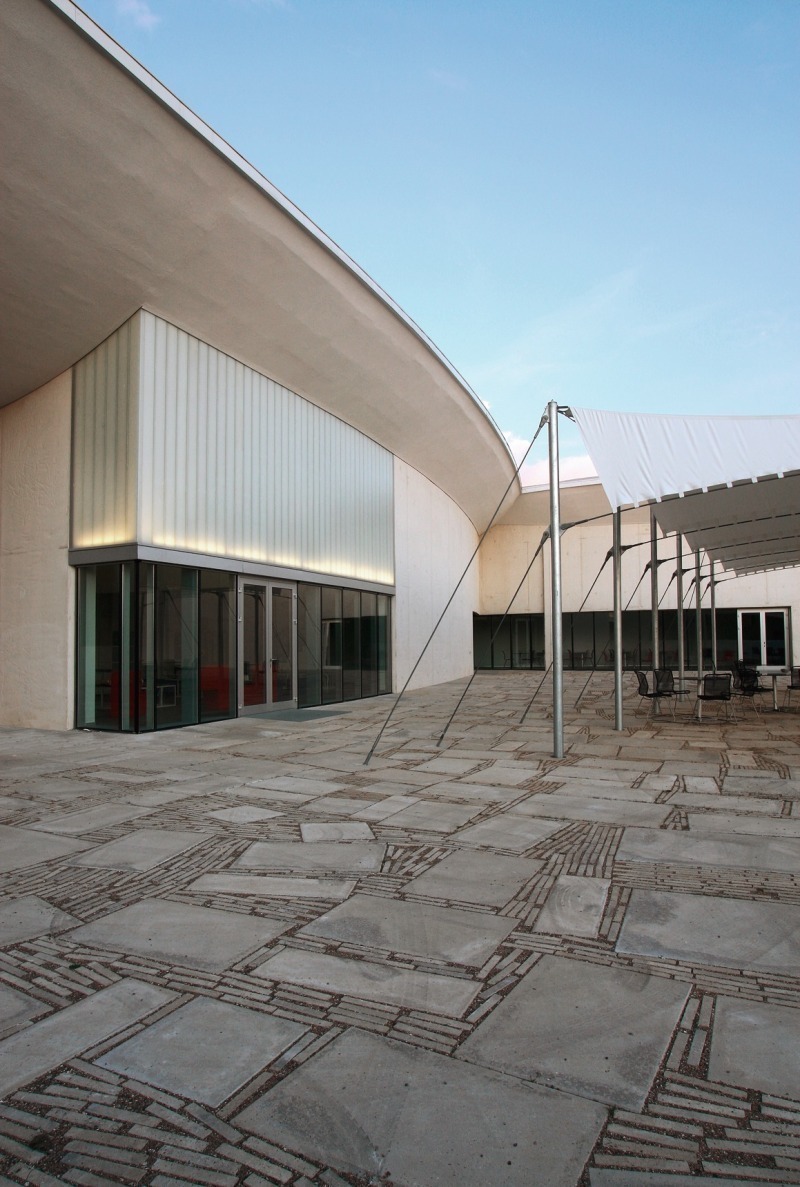 Das Zentrum des Gebäudes bilden zwei großzügige Ausstellungsräume, um die sich Foyer, Konzertsaal, Bibliothek, Büroräume, Café-Restaurant und Open-Air-Bühne gruppieren. Entwurfsprägend sind auch die gewölbten Dachelemente aus Stahlfachwerkträgern, die im Außenraum durch weit ausladende Dachüberstände beeindrucken. Dem Innenraum verleihen sie eine eindrucksvolle Atmosphäre, indem sie mit ihrer konvex gebogenen Untersicht an Stoffbahnen oder Segel erinnern.