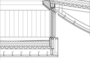 Für die natürliche Belichtung der Ausstellungsbereiche wurden die einzelnen Dachsegmente so gegeneinander versetzt, dass große Oberlichter entstehen. Diese wurden mit sandgestrahlten U-Profilgläsern realisiert und einer transluzenten Wärmedämmung von Okalux versehen. Die 40 mm starke Okapane-Kapillareinlage streut das Tageslicht weich in die Ausstellungsräume. Dabei weist die Einlage aus PMMA sehr hohe Lichttransmissionswerte auf und schützt die Kunstwerke zugleich vor UV-Strahlung.