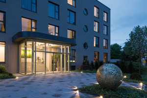 Boardinghouses und Microapartments sind ein begehrtes Zuhause für Studenten und Geschäftsleute. Diese Mini-Wohnräume bieten meist mehr als traditionelle WG- oder Hotelzimmer, denn neben hochwertiger Ausstattung und großzügigen Grundrissen, stehen den Gästen häufig Gemeinschaftsflächen und Service-Leistungen zur Verfügung. Unweit der Messe Riem im Büropark ExpoGate in Aschheim-Dornach befindet sich der Standort des Boardinghouse Golden Ball. Die Eigentümer ließen insgesamt 44 Wohnungen, darunter eine Grand Suite mit drei Schlafzimmern und zwei Penthouse-Wohnungen mit eigener Terrasse, in einer ehemaligen Lagerhalle errichten. Hier finden Menschen, die das Gefühl der eigenen vier Wände auch in der Ferne schätzen, ein temporäres Zuhause. Eine 1,5 m große, goldene Kugel empfängt die Besucher des Golden Ball. In das Metallgeflecht sind Reiseszenen und Zeichen der Gastfreundschaft integriert. Ein halbes Dutzend Stufen führen zum Foyer, durch das der Gast zu einer Theke aus massivem Schwarzstahl gelangt. Von dort werden die Gäste weiter in ihre Zimmer geleitet. Über eine Rampe geht es zum zentralen Atrium. Hier zeigt sich die gesamte Größe des Umbaus. Mit einer Betonsäge wurde ein Innenhof in die ehemalige Lagerhalle geschnitten, dessen gläsernes Dach sich schrittweise verschatten lässt. Den Eigentümern war es wichtig, bei der Gestaltung ihres Boardinghouses alles aus der Perspektive des Gastes zu betrachten. So erinnern die Wohnungen dank warmer Holztöne, hochwertiger Ausstattung und großzügiger Raumgrößen ab 35 m² mehr an ein Zuhause als ein Hotelzimmer. Eines auf Zeit, doch ausgestattet mit allem, was man sich wünscht: Vom Frühstücks-Buffet bis zur Lounge mit Bar.