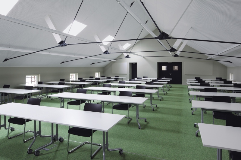 In Schulen eignen sich ebenfalls Vinylbeläge und Nadelvlies. Übergänge zwischen Außen- und Innenbereich sollten Matschschleusen für dreckige Schuhe vorsehen. In Sanitär-