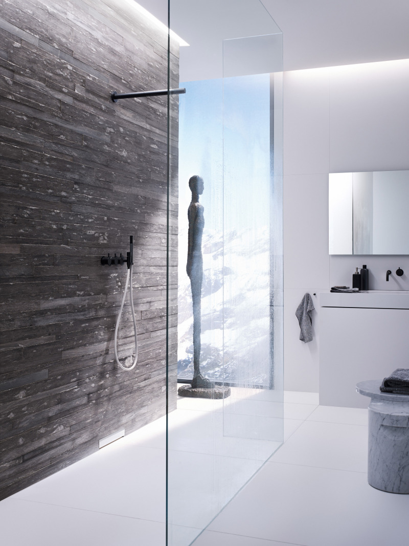 Geberit hat sein Duschelement mit Wandablauf technisch und optisch überarbeitet. Für die Ausbildung eines gleichmäßigen Gefälles kann jetzt optional ein Wandanschlussprofil aus Edelstahl eingesetzt werden. Da der Ablauf in der Wand liegt, kann der Bodenbelag unterbrechungsfrei gestaltet werden. Dies zahlt sich vor allem bei großformatigen Fliesen oder Natursteinplatten aus, wo es auf ein ruhiges Flie-