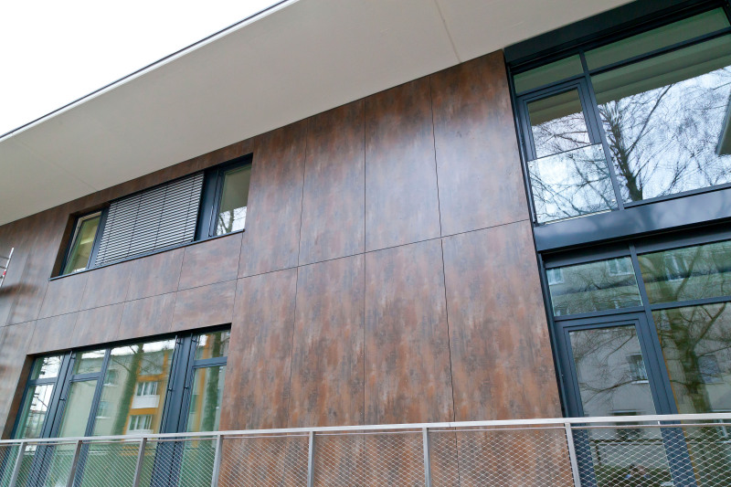 Architekt DI Johannes Schallhammer zum Objekt und der Materialentscheidung: „Die Herausforderung, für rund 200 junge Menschen und ihre Lehrkräfte eine inspirierende Umgebung zu schaffen, war äußerst reizvoll. Wir haben uns ganz konsequent am Prinzip der Nachhaltigkeit in technologischer und stilistischer Hinsicht orientiert. Die hinterlüfetete Fundermax m.look Fassade trägt einen großen Anteil zur Erreichung des Niedrigstenergiegebäude-Standards und zur Senkung der Heizkosten um 75% gegenüber dem alten Gebäude bei. Bei der Gestaltung war mir ein modernes Erscheinungsbild wichtig, das sich ganz bewusst von der Optik altbekannter öffentlicher Bauten abhebt. Die breite Palette an Dekoren und Gestaltungsmöglichkeiten hat mir die Aufgabe leicht gemacht. Meine Vision für dieses Objekt konnte ich mit m.look optimal umsetzen.“
