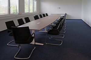 Aufgrund von Platzmangel und energetischer Defizite sollte das 1984 erbaute und bezogene Verwaltungsgebäude der GB-Chemie GmbH abgerissen werden, wobei der Betrieb auch während der Bauphase weiterlaufen musste. Für den zweigeschossigen Neubau plante das Architekturbüro Mögel & Schwarzbach aus Stuttgart eine Erweiterung um ein drittes Geschoss ein. Hierbei wurden Bodengutachten, die Erdbeben- und Schneelastzone, der Schallschutz sowie das Brandschutzkonzept berücksichtigt. Mit einer Fläche von runden 760 m² bietet das neue Gebäude, das in nur zehn Monaten errichtet wurde, auf zwei Etagen Platz für zwölf Doppel-Büros, ein Einzel-Büro, eine Cafeteria mit Küche sowie einen großen Besprechungsraum. Alle erforderlichen Wirtschaftsbereiche wie Lager-, Server- und Putzmittelraum, die Teeküche, die Sanitärbereiche sowie ein Sanitätsraum mit Ruhebereich wurden ebenso eingerichtet. Lichte Raumhöhen von 3 m ermöglichten den Einbau hoher Fenster, die für lichtdurchflutete, freundliche Räume sorgen und eine angenehme Arbeitsatmosphäre in den Büros schaffen. Eine 3-fach-Wärmeschutz-Verglasung der Fenster, hohe Dämmstärken der verbauten Dämmmaterialien im Boden, den Wänden und dem Dach sowie der Einbau einer Wärmepumpe mit Energieverteilung über die Fußbodenheizung sorgen für eine gute Energiebilanz. Für die Sommerzeit verfügt die Wärmepumpe außerdem über eine Kühlfunktion, die die Temperaturen im Gebäude angenehm reguliert und klimatisiert. Die Beleuchtung, die Fenster, der außen liegende Sonnenschutz sowie die Gebäude-Zugangskontrolle werden von moderner KNX-Gebäudetechnik überwacht.