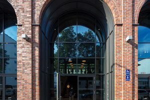 Im neuen Kreativ-Hotspot Werksviertel im Münchener Osten stellt der loftartige Bürokomplex M8 Work & Create einen auffälligen Kontrapunkt zur gleichförmigen postmodernen Architektur in der Umgebung dar. Flexibilität in der Nutzung und neueste technische Erkenntnisse sind die Grundlage für einen langen Lebenszyklus des Gebäudes. Das Büro Oliv Architekten legte beim Entwurf ein Hauptaugenmerk auf die Ausgewogenheit zwischen ökologischer und ökonomischer Nachhaltigkeit. Die historisierende Fassade mit ausgeprägten Lisenen lehnt sich bewusst an die Gewerbearchitektur des 19. Jahrhunderts an. Die Herausforderung bestand darin, das Grundstück optimal zu bespielen und mit der Fassade einen Mehrwert für die Umwelt zu schaffen. Das Areal hat eine Größe von ca. 4 700 m² und liegt zwischen den Meisterschulen am Ostbahnhof und dem zukünftigen iCampus. Mit Seitenlängen von 76 bzw. 46 m nutzt die Kubatur des Komplexes das Grundstück optimal aus. Nach außen wirkt das Gebäude geschlossen, im Innern empfängt die Besucher ein zweigeschossiges Foyer. Eine imposante Freitreppe führt zum innen liegenden, zentralen Hochgarten. Sichtbeton und schwarzer Stahl bestimmen die weitere Materialität, um einen minimalistischen Gegensatz zur Fassade zu setzen. Das M8 hat die LEED Zertifizierung in Gold erhalten.