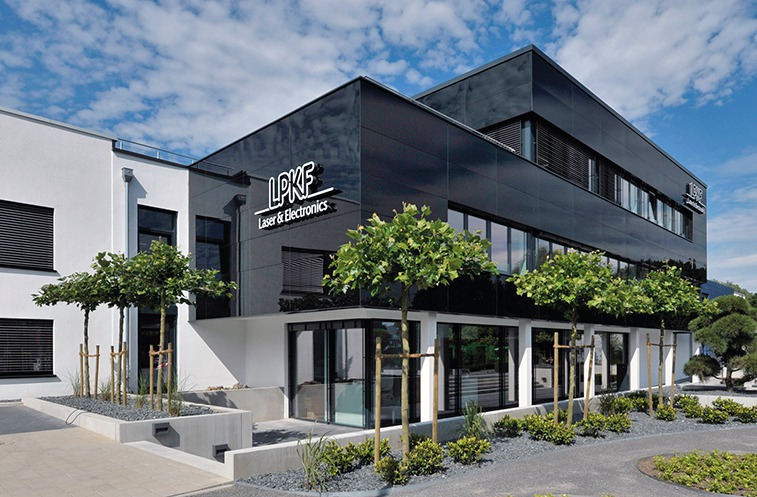 Der Neubau der LPKF AG wurde von den Architekten Rainer Breitenbach, Neustadt, im Jahr 2014 gebaut. Er ergänzt in Garbsen in der Nähe von Hannover das Unternehmen um ein Gebäude, in dem der Vorstand und ein neuer Forschungs- und Entwicklungsbereich untergebracht sind. Das dreigeschossige Gebäude gliedern die Architekten mit Fassadenbändern, die von schwarz-glänzenden Fassadenplatten gefasst sind. Mäandernd heben sich die oberen beiden Geschosse vom Eingang ab, der in weißer Farbe hinter Stützen liegt. Im Erdgeschoss befinden sich das Foyer mit Empfang und ein Präsentationsraum. Im ersten Obergeschoss sind Büros und Seminarräume untergebracht, die bei Bedarf in kleinere Einheiten unterteilt werden können. Das oberste Geschoss ist die Vorstandsetage. Sie ist nicht über das gesamte Geschoss gebaut, so dass der Raum sich auf eine Dachterrasse erweitert. Im Innern legten die Architekten Wert auf helle, minimalistische Räume, die durch einzelne Kommunikationsflächen aufgelockert werden. Eine weitere Anforderung war eine nachhaltige und energiesparende Gebäudetechnologie. Eine Wärmepumpe kühlt und heizt simultan den Neubau. Die Herausforderung war dabei das Innenraumkonzept durch das Klimakonzept nicht zu verändern. Die Lösung sahen die Architekten in einem ganzheitlichen Ansatz. Nun lassen sich durch Wärmerückgewinnung innerhalb des Gebäudes mit einem Klimasystem, das Heizen und Kühlen zusammenführt, die Energiekosten um bis zu 50 % reduzieren.