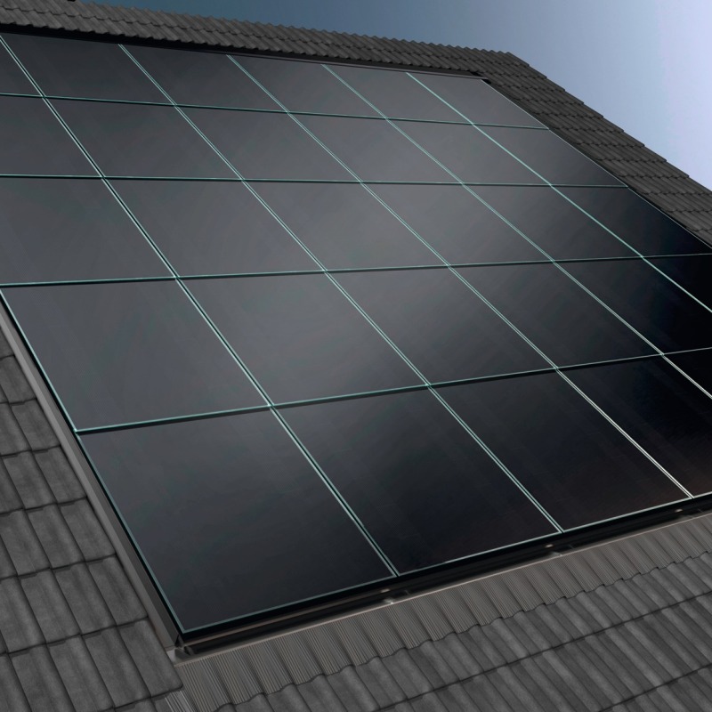 Bei dem Schüco Montagesystem MSE 100 Indach lassen sich die Schüco Dünnschichtmodule MPE der BL Serie (Blackline-Serie) in Schrägdächern mit Ziegeleindeckung integrieren. Dank seiner geringen Aufbauhöhe fügt es sich optimal in das Dach ein. Das Ergebnis ist ein ästhetisches Design für Schrägdächer mit Ziegeleindeckung im Neu- und Bestandsbau. Die schwarzen Eindeckbleche und Verkleidung passen zu den Dünnschichtmodulen MPE der BL Serie, die Modulbefestigungen sind nicht sichtbar. Auf diese Weise entsteht bei einer geringen Aufbauhöhe von nur 7 cm in Kombination z. B. mit der Frankfurter Pfanne eine plane und flächenbündige Optik in ästhetisch ansprechendem Design. Die Schüco Dünnschichtmodule werden mit Hilfe von Modulverbindern an horizontalen, am Dachstuhl befestigten Montageschienen fixiert. Auf ein wasserdichtes Unterdach wird verzichtet, eine herkömmliche Unterspannbahn ist für das Schüco MSE 100 Indach völlig ausreichend. Durch die überlappende Modulanordnung wird ein hoher Selbstreinigungseffekt der Module erzielt.