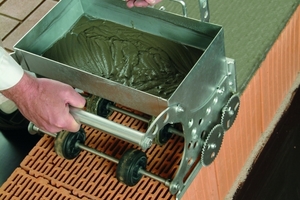 Beim Bau eines energieeffizienten Hauses kommt es nicht nur auf die Wahl der passenden Mauerziegel an, auch die Frage ihrer Verbindung ist von entscheidender Bedeutung, um den Energieverbrauch im Gebäude zu senken. Deckelnder Dünnbettmörtel verbessert dabei die bereits hohen Wärmedämm-Eigenschaften des Mauerwerks. Hierzu bietet die Firma Franken Maxit einen besonderen Dünnbettmörtel – maxit mur 900 D – für das deckelnde Arbeitsverfahren an. Die patentierte Rezeptur des Leichtmörtels führt zu einer Arbeitszeit-Ersparnis von bis zu 30 %. Er reduziert deutlich den Mörtelverbrauch und beugt wirksam Putzrissen vor. Das deckelnde Verfahren mit Dünnbettmörtel ist speziell auf die Verwendung von plangeschliffenen Mauerziegeln (Planziegel) zugeschnitten. „Gedeckelt“ meint einen vollflächigen Mörtelauftrag mit Hilfe eines Mörtelschlittens, der mit gleichmäßiger Geschwindigkeit über die Lagerfuge gezogen wird.