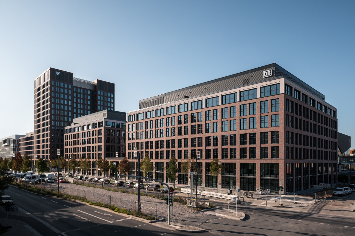 Um das Gebäude in seiner Gesamtwirkung hochwertig zu machen, kam es vor allem auf die Materialwahl und die sorgfältige Detaillierung an, für die die Architekten immer wieder kämpfen mussten. „Gliederung, Plastizität und Tiefe, Materialien und Maßstäblichkeit spielten sowohl in der Konzeption wie auch in der finalen Ausgestaltung eine entscheidende Rolle. Bei der letztendlichen Produktwahl galt es zu überzeugen, Baustoffe auszuwählen, die gut altern, anstatt zu ‚gammeln‘ “, erläutert Christian Schmidt. So wollten Schmidtploecker mit dem Gebäude-Ensemble nicht nur den fehlenden Stadtbaustein schaffen, der angemessen auf die städtebauliche Umgebung und die Nutzung reagiert, sondern vor allem auch ein dauerhaftes Haus, das sich seinen Nutzern auch in Zukunft anpassen kann. Aktuell ist es konsequent auf die Bedürfnisse der Mieterin Deutsche Bahn zugeschnitten, doch wer weiß, wie unsere Arbeitswelten in 20 Jahren aussehen werden? „Mit ‚Brick‘ und ‚Tower‘ wollten wir uns auf diese Veränderungen einlassen“ sagt Christian Schmidt. „So ermöglichen beispielsweise die haustechnische Installation im Deckenhohlraum sowie ein stringentes Ausbauraster eine jederzeit problemlose Umorganisation der Raumsituationen.“