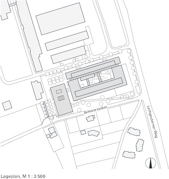 Bauteil A und B bilden zusammen ein viergeschossiges Rechteck, an das sich auf der Westseite ein zweistöckiges Gebäude, das Bauteil C, anschließt. Städtebaulich vermittelt dieser Bau zwischen dem Großvolumen des Institutsgebäudes und der benachbarten, kleinteiligen Wohnbebauung. Zudem bildet es den optischen Abschluss der fußläufigen Campusmagistralen.