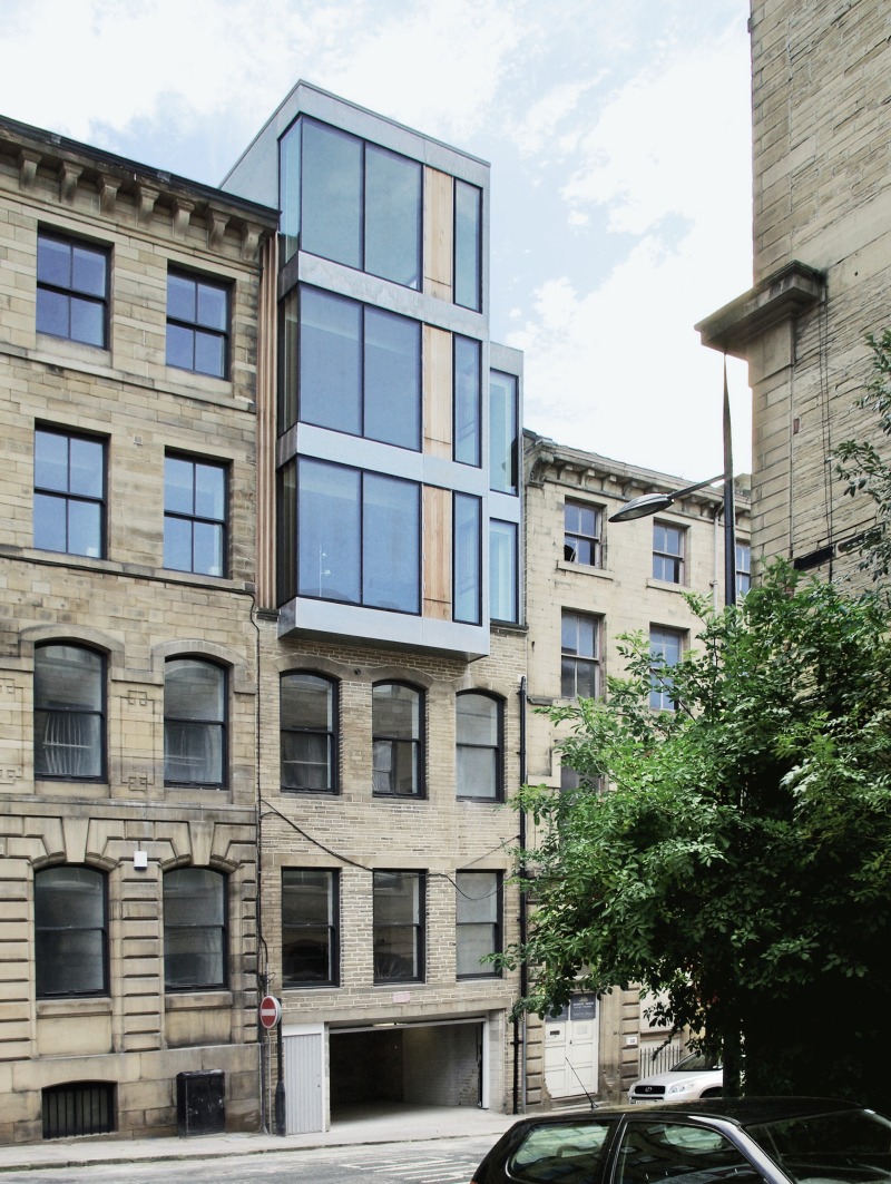 Die nordenglische Stadt Bradford war Mitte des 19. Jahrhunderts das Zentrum der Textilindustrie. Viele deutsche Kaufleute siedelten sich in „Little Germany“ an, deren Lagerhäuser bis heute das Viertel prägen. Kraus Schönberg Architekten sanierten nach dem Hanover House auch das benachbarte Tayson House aus dem Jahre 1866 und füllten eine Baulücke mit einem neuen Zeitzeugen.