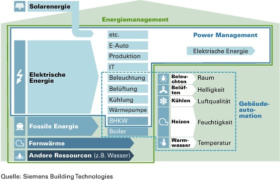 Gebäude sind – noch vor Industrie und Verkehr – die weltweit größten Einzel-Energieverbraucher. Entsprechend hoch ist das Einsparpotential. Durch die Einbindung in ein Smart Grid lässt sich die Effizienz von Gebäuden steigern. Gleichzeitig übernehmen Smart Buildings als intelligente und dezentrale Teilnehmer im Netz eine wichtige Ausgleichsfunktion innerhalb des Smart Grid. Für Betreiber und Nutzer entsprechender Gebäude bedeutet das: eine kostengünstige, zuverlässige, umweltfreundliche und zukunftsfähige Energieversorgung. Die Grundlage für ein solches Energiemanagement