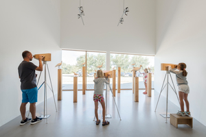 Installation von Jason Bruges Studio „The Digital Ornithology“, bei der ein Schwarm aus 562 kleinen LCD-Bildschirmen in den Himmel zu fliegen scheint. „Ziel dieser Ausstellung ist es, uns die Augen zu öffnen für die enorme Vielfalt dieser Landschaft und für den Dreh- und Angelpunkt, den das Wattenmeer für die Zugvögel darstellt. Die Ausstellung ist ein ganzheitliches Erlebnis, Szenografie, Kunst, Handwerk und Film sollen uns berühren und anregen, direkt nach draußen zu gehen, um den Zugvögeln zu begegnen“, sagt Ausstellungsmacher Johan Carlsson.