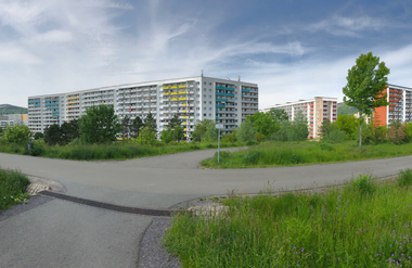 Ein wenig verloren und wie aus dieser Zeit gefallen steht er da, der Staudenhof, ein Plattenbau mit rund 180 Kleinwohnungen in direkter Nähe zur St. Nikolai Kirche im Herzen des historischen Potsdam. Ihre Verlorenheit zieht die graue Platte mit wenigen, von den BewohnerInnen gesetzten Farbtupfern aus dem Abbruch des mit ihm geplanten ehemaligen FH-Gebäudes, das mit der heute umgebauten Bibliothek Anfang der 1970er-Jahre einmal als zentraler Ort der Wissensvermittlung und des Wohnrechts für alle stand. Mit dem ebenfalls abgerissenen Staudenhofgarten bildeten diese vier Bausteine den Kern einer Neuplanung der Potsdamer Altstadt.