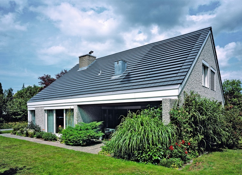 Mit seinem neuen Photovoltaikmodul setzt das Unternehmen Creaton auf die Zukunft und verbindet die Effizienz der Solarenergie mit der Ästhetik hochwertiger Dächer. Wer sich alternative Energie über das Dach ins Haus holen möchte, muss mit diesem neuen hinterlüfteten Indach-System keine ästhetischen Kompromisse mehr eingehen, denn Decklängen und Deckbreitenraster des Moduls werden auf das jeweilige Ziegelmodell exakt abgestimmt. Die 1,8 m langen und ca. 11 kg leichten Elemente können ohne Kran verlegt werden, sie sind leicht und einfach zu händeln wie die Tondachziegel selbst. Der Rahmen und die Spannungsleiter des in die Dachfläche integrierten Moduls sind nicht wie sonst silberfarben, sondern abgedunkelt. Das Modul fügt sich nahtlos in die Dachfläche ein, die Gestaltung wird nicht beeinträchtigt. Sowohl die Zelllaminate als auch die dazugehörigen Wechselstromrichter werden in Deutschland hergestellt. Hochwertige monokristalline Siliziumzellen erzielen Spitzenwerte beim Wirkungsgrad.