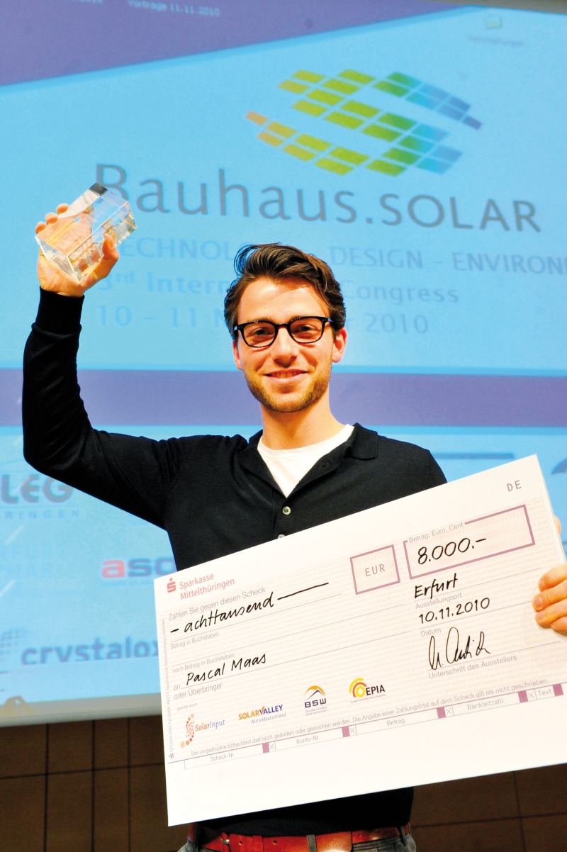 Den erstmals von SolarInput, Solarvalley Mitteldeutschland, dem Bundesverband Solarwirtschaft und dem Europäischen Photovoltaikverband (EPIA) gestifteten Bauhaus.SOLAR AWARD 2010 gewinnt das Projekt „Power-Plant“ von Pascal Maas aus Münster. Zwei weitere Projekte aus Oxford und Weimar wurden bei der Abendveranstaltung des 3. internationalen und wissenschaftlichen Kongresses Bauhaus.SOLAR in Erfurt ausgezeichnet.