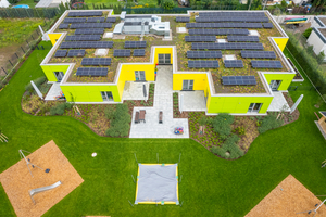 Mit der DGNB-Mehrfachzertifizierung in Gold bringt ALHO beste Voraussetzungen für nachhaltiges, gesundes Bauen mit. Ein Attribut, auf das die Stadt Viernheim bei ihren Bauvorhaben stets sehr großen Wert legt. Die Kita Lorscher Straße ist darum bereits die zweite Kindertagesstätte der Stadt, die zusammen mit ALHO entstand. Auch da die Betreuungseinrichtung in der beliebten Metropolregion Rhein-Neckar sehr schnell benötigt wurde, war eine erneuteEntscheidung „pro Modulbau“ sinnvoll – nur 12 Wochen dauerte die Bauzeit vor Ort. Der Neubau bietet insgesamt 112 Kindern im Alter zwischen ein und sechs Jahren Platz. Im großzügig angelegten Flurbereich ist ein reger Austausch der Kinder gruppenübergreifend möglich. Hierfür wurden die fünf etwa 50 m² großen Gruppenräume mit den dazugehörenden Nebenräumen und Sanitäranlagen sehr kreativ auf einem freien, eingeschossigen Grundriss platziert. Dass die Kita zudem hohen Energieeffizienzstandards entspricht und mit sehr geringem Strom- und Wärmeverbrauch arbeitet, war den Verantwortlichen ein wichtiges Anliegen.