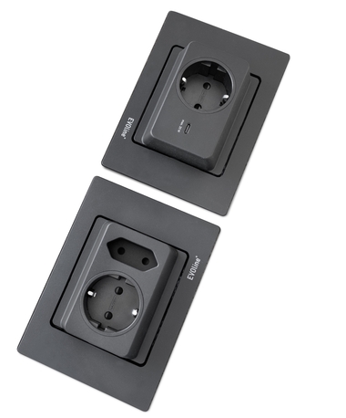 Die EVOLine Tische von Schulte Elektrotechnik eignen sich besonders für die vielfältigen Nutzungsanforderungen an Konferenzräumen. Die elektrifizierten Klapptische ermöglichen einen schnellen Auf- und Abbau und bieten mittels einfacher Steckverbindung variable Settings je nach Nutzung und Bedarf. Das Einbauelement EVOline BackFlip ist bündig in die Tischflächen eingebaut. Durch leichtes Antippen dreht sich der Einbau nach oben und gibt zwei Steckdosen sowie einen USB-Charger frei. In seiner matt schwarzen Ausführung passt es zu den speziell für die Tische angefertigten Tour Cases. Werden die Klapptische zu neuen Formationen umgebaut, ermöglicht die EVOline Plug & Play Steckverbindung die Kopplung der Tische. Es wird lediglich ein Netzanschluss am Anfang der Tischreihe benötigt, um alle nachfolgenden Arbeitsplätze mit Strom zu versorgen. Auf der Unterseite jeder Tischplatte befindet sich ein Auffangnetz, das mit einem solchen Versorgungskabel ausgestattet ist. So muss nicht im Vorhinein festgelegt werden, welcher Tisch die Stromversorgung der weiteren Arbeitsplätze übernimmt.