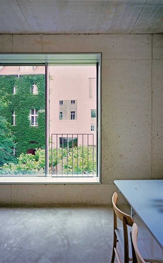 David Chipperfield Architects hat sein Büro in Berlin-Mitte erweitert. Vier neue Baukörper ergänzen das Bestandsgebäude, eine ehemalige Klavierfabrik aus dem Jahr 1895. Während das Vorderhaus nun die Lücke in der Joachimstrasse schließt, interpretieren die in die Höfe eingestellten Baukörper die vorgefundene Situation neu. Sie verharren in einer Ambivalenz zwischen Wiederherstellung des Zustands vor Kriegszerstörung und einer neuen Idee des Blockinneren: Einfache, mehrseitig wahrnehmbare Volumen greifen die historische Hofstruktur wieder auf. Im Vorderhaus befinden sich Ausstellungs- und Veranstaltungsräume sowie ein Apartment. Das 4-geschossige Mittelhaus und das Gartenhaus schließen direkt an den Bestand an und erweitern ihn um Besprechungs- und Büroräume. In dem freistehenden, 2-geschossigen Mittelhaus ist eine Kantine untergebracht. Die Wände sind aus Dämmbeton und übernehmen alle architektonischen Funktionen: Sie tragen, dämmen, schützen und definieren die Gebäude. Große, geschossweise versetzte Fenster ermöglichen abwechslungsreiche Ein-, Aus- und Durchblicke und variieren so den einfachen gestapelten Grundriss.