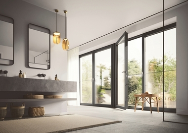 Die neuen Fensterelemente KF 714 S und KF 714 S-WD von Kneer mit Dreifachverglasung sind den künftigen Anforderungen der EnEV problemlos gewachsen. Sie bestehen aus einem neuartigen, äußerst stabilen Faserverbundwerkstoff, der die Kunststoff-Fenster bis zu 30 % leichter macht – einfach deshalb, weil überwiegend auf die Kältebrücke Stahl als aussteifendes Element verzichtet wurde. Schallschutzklasse 5 oder Widerstandsklasse 2 und 3 lassen sich auch ohne Stahlverstärkung meistern. Für die Stabilität sorgt eine Kunststoff-Technologie, die seit Jahren im Flugzeugbau und im Formel-1-Sport erprobt ist. Die Vollarmierung geht bis in die Ecken, wird dort fest verschweißt und sorgt so für eine biegesteife Eckstabilität und Verwindungssteifigkeit. Die Stabilität der Profilkonstruktion erlaubt auch bei großen Elementen einen eleganten Fassadenauftritt mit Ansichtsbreiten von 115 mm. Bis zu einer Höhe von 220 cm oder einer Breite von 140 cm benötigen die Fensterelemente keine Stahlarmierung.