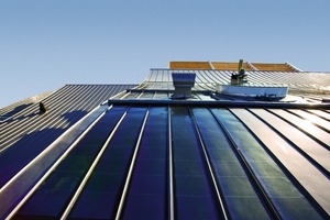 Prefalz voltaik ist eine integrative PV-Lösung für Aluminium Stehfalzdächer, die Stromerzeugung mit ästhetischer Integration vereint. Die PV-Laminate passen sich der Dachkontur wie eine zweite Haut an, das Erscheinungsbild eines Stehfalzdaches bleibt dadurch erhalten. Prefalz voltaik besteht aus Silizium–Dünnschicht–Laminaten der Firma Unisolar. Eine Silizium-Dünnschicht-Zelle hat die für ihre Produktion aufgewendete Energie schon nach 2 - 3 Jahren wieder erzeugt. Auf das Trägermaterial werden drei unterschiedliche, lichtaktive Siliziumschichten aufgebracht, die jede auf eine bestimme Wellenlänge des Lichtes hin optimiert sind. Dadurch können die einzelnen Zellen jeweils den grünen, blauen oder roten Wellenlängenbereich des Lichtes optimal absorbieren. Schon bei diffusem Licht erzeugen diese Zellen Strom und haben im Vergleich mit anderen Silizium-Dünnschicht-Zellen den höchsten Wirkungsgrad. Der Energieertrag kann dadurch gegenüber kristallinen Zellen um 20% höher ausfallen. Der einzige Nachteil im Vergleich zu kristallinen Zellen ist der höhere Flächenbedarf. Die Laminate sind 394 mm breit und nur 2,5 mm stark.