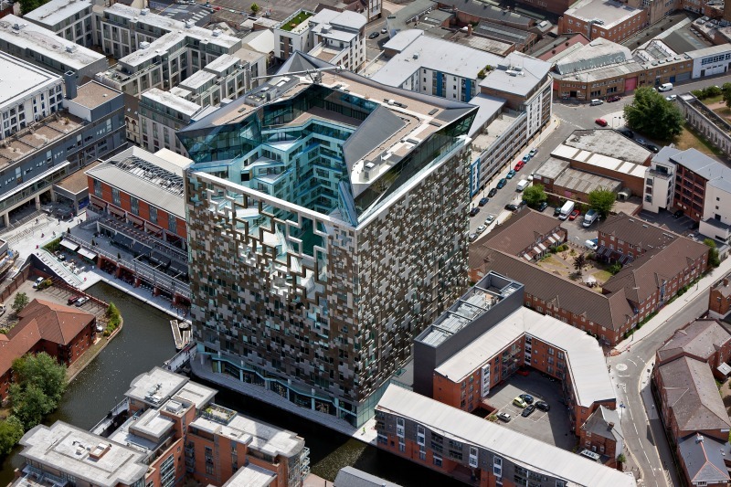 Die Skyline von Birmingham wird seit Anfang 2011 von einem architektonischen Highlight dominiert: The Cube, ein 70 m hoher Gebäudekomplex im Zentrum der zweitgrößten Stadt Großbritanniens, besticht durch eine extravagante Fassade mit facettenreichen Spiegelungen in verschiedenen Bronzetönen. Entworfen hat das monumentale Gebäude Ken Shuttleworth vom Büro MAKE Architects. Auf 10359 m² Fläche und 17 Etagen sind neben luxuriösen Appartements exklusive Shops und Büros sowie Birmingham’s erstes Boutique Hotel und ein Dachpanorama-Restaurant untergebracht. Zur Straßenseite sprengt sich die Fassade auf und erlaubt Einblicke in die Würfelform. Im Inneren öffnet sich eine extra für das Bauwerk entwickelte Ganzglas-Elementfassade, die sich vom Innenhof aus von Etage zu Etage verdreht und einem sich nach oben vergrößernden Atrium Raum gibt. Eine aus Glas und Stahl gestaltete Krone über 2 Stockwerke bildet das Dach. Ein automatisches Parksystem versorgt das Gebäude mit zwei miteinander gekoppelten Multiparkern für 339 PKW Stellplätze. Die Autos werden nicht auf Paletten, sondern direkt über vier Lifte und sechs Shuttles auf den Betonebenen abgestellt.