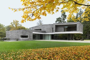 Ganz anders ist das Haus M für einen leidenschaftlichen Kunstsammler in München-Grünewald, das seine ausgeprägte Hangsituation für eine Komposition geschichteter und sequentierter Volumina nutzte, die höchst sensuell Körper, Raum und Licht zu einem untrennbaren Ereignis verdichten. Schwere, mit Bruchstein verkleidete Volumina wechseln sich dort mit abstrakt in Weiß gehaltenen Wandflächen und gewagt anmutenden gläsernen Fugen ab. Einmal mehr begnügte sich hier Titus Bernhard nicht mit der Gestaltung von Hüllen, sondern definierte verschiedene Territorien ganz eigenen Charakters, eine Qualität, die seine privaten Bauherren besonders zu schätzen wissen.