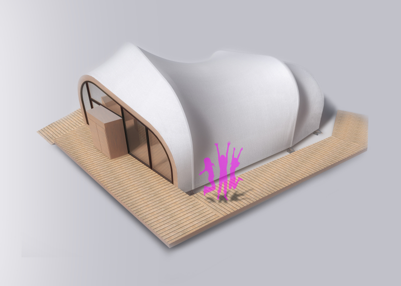 Industrie- und Möbeldesigner sowie Textilstudenten zusammen an einem außergewöhnlichen Projekt: ein modulares Passivhaus mit einer textilen Hülle, das als bau-