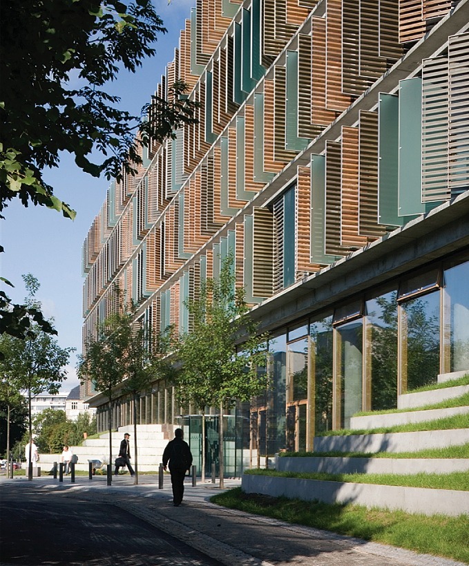 Ist es nicht geradezu das vornehmste architektonische Ziel einer Schule oder Universität, einen Anspruch zu dokumentieren, der das gute Gefühl einschließt, dazuzugehören, um in dieser auch architektonisch fokussierten Gemeinschaft mehr zu wagen und mehr zu erreichen als auf sich allein gestellt? Ist es nicht erste Aufgabe eines Studentenwohnheims, eben dieser eigenartigen Begrifflichkeit nicht zu folgen, sondern dem Zauberwort der Facebook-Generation, das da lautet: „socializing“? Ist nicht der offene Austausch zwischen zahlreichen Nationalitäten und in vielen Sprachen langfristig viel wichtiger als der Inhalt schnell veralteter Vorlesungen und Lehrbücher? Er ist doch der Nährboden, auf dem Studenten heute ein intensiveres Verhältnis zu Urbanität, gesellschaftlicher Komplexität und interkultureller Kompetenz entwickeln. Ganz im Sinne von Cees Nootebooms Eindruck eines spontanen Tanzes zahlreicher Passanten auf der Plaza Major von Salamanca, des für den reisenden Schriftsteller noch nach über 50 Jahren schönsten Platzes weltweit: „Irgendwie wußte ich genau: so mußte die Welt aussehen. Ich saß überwältigt am Fenster, wie verzehrt von dem Verlangen, mitmachen zu dürfen. Doch wenn die Welt so aussehen mußte, müßte es erst einmal Städte mit solchen Plätzen geben, und diese Plätze müßten genau im Herzen dieser Städte liegen“.[1]
