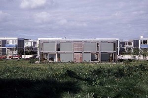 Wohnungsbau in der Stadt schließt heute zwangsläufig die Frage danach ein, wie sich der Anspruch an ein individuelles Wohnen mit Einfamilienhausqualitäten und die ökologisch notwendige Verdichtung der Stadt und ihrer Infrastruktur harmonisch miteinander verbinden lassen. Lundgaard & Tranberg ist es gelungen, die weiße Moderne der zwanziger Jahre mit dem Individualismus des 21. Jahrhunderts zu verbinden. Die Architekten knüpfen dabei an traditionelle dänische Wohnmodelle an, die schon in den 40er Jahren im Zuge der Altstadtsanierung Wohnhochhäuser mit geneigtem Dach einsetzten. Damals waren es allerdings kleinformatige Satteldächer, die über gerasterten Fensterbändern Kleinteiligkeit beschworen. Heute verwirklichen Lundgaard & Tranberg diesen Anspruch unter weit gespannten Pultdächern mit einem vor Vielfalt fast flirrendem Fassadenbild. Immer wieder gelingen den Architekten neue Variationen in einer architektonischen Melodie, deren Töne allein die Fenster und die Freiräume bilden. Material- oder Farbwechsel spielen bei diesem Wohnungsbau, von den sehr filigranen Fensterprofilen aus Teakholz abgesehen, keine Rolle. Ein größerer Kontrast zu den in diesem Punkt sehr konventionellen neuen Wohnbauten auf der gegenüberliegenden Uferseite ist kaum vorstellbar. Dort fällt allein der zu Wohnungen umgenutzte Silobau von MVRDV aus dem Rahmen der die Architektur heute viel zu sehr bestimmenden Material- und Farbenvielfalt.
