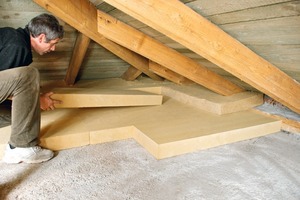 Die EnEV verpflichtet zur Dämmung der obersten Geschossdecke. Die Steico AG stellt mit dem Produkt Steicotop eine neuartige Holzfaser-Dämmplatte vor, mit der die Dämmung der obersten Geschossdecke sicher und schnell gelingt. Die Platten verfügen über eine speziell verdichtete „Finish-Oberfläche“, die eine direkte Begeh- und Nutzbarkeit erlaubt. Eine zusätzliche Abdeckung, z.B. mit Holzwerkstoffplatten, ist nicht erforderlich. Der Speicher kann umgehend wieder genutzt werden, z.B. als Lagerraum. Schon mit einer 8 cm hohen Lage lassen sich bei einer 16 cm dicken Betondecke über 85% des bisherigen Wärmeverlustes einsparen. Die aktuellen EnEV-Vorgaben werden bei zweilagiger Verlegung von Steicotop 8 cm erreicht. Auch die Anforderungen der geplanten EnEV 2012 lassen sich mit dem Dämmsystem problemlos erreichen. Mit einem Format von 40 x120 cm und Dicken von 8 bzw. 10 cm passen die STEICOtop Dämmplatten problemlos auch durch enge Dachluken. Bei Altbau-Betondecken ist in der Regel auch keine dampfbremsende Folie als Unterlage notwendig. Die Holzfaser-Dämmplatten sind besonders diffusionsoffen. Sollte einmal außerplanmäßige Feuchte eindringen - z.B. bei einer nicht vollkommen dicht ausgeführten Holzbalkendecke - kann sie problemlos verdunsten. So reduziert Steicotop deutlich das Risiko von Feuchteschäden.