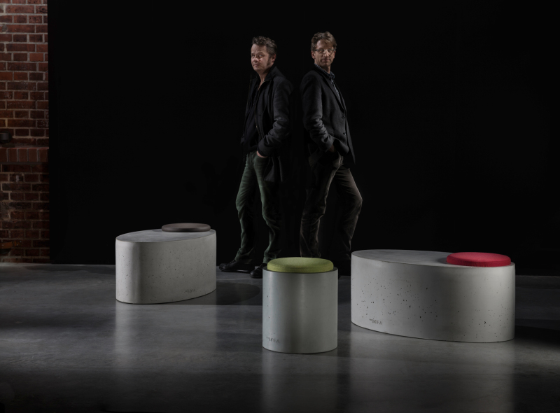 Das Büro BODAMER I FABER ARCHITEKTEN, Stuttgart, hat ein Betonmöbel entworfen: das Bofa. Die Idee: ein Ruhemöbel, das den Anforderungen des Brandschutzes gerecht wird und nicht ohne weiteres verschoben werden kann. Das Bofa ist in zwei verschiedenen Größen erhältlich – rund und oval. Während die runde Version als klassischer Hocker fungiert, sind in der ovalen bequeme Ruhe- und praktische Ablagefläche in einem Möbelstück vereint. Durch die Kombination von runden und ovalen Elementen entstehen individuelle Sitzgruppen mit integrierten Tischflächen. Das runde Sitzmöbel verfügt über einen Durchmesser von 40 cm bei einem Gewicht von 34 kg. Das ovale Bofa ist mit seinem Gewicht von 80 kg und den Maßen 60 x 100 cm deutlich größer und schwerer. Beide Bofas werden durch ein rundes Auflagekissen aus Naturleder oder einen hochwertigen und robusten Stoff ergänzt. Die Farbpalette der Stoffe reicht von Grau- über Naturtönen bis hin zu Rot, Blau oder Grün. Der Betonkorpus ist in den Grundfarben Grau oder Weiß erhältlich. Dank einer speziellen Imprägnierung ist die Betonoberfläche der Bofas schmutzabweisend. Die Bezüge der Sitzkissen sind darüber hinaus mit einem Präparat behandelt, das sie feuerfest macht.