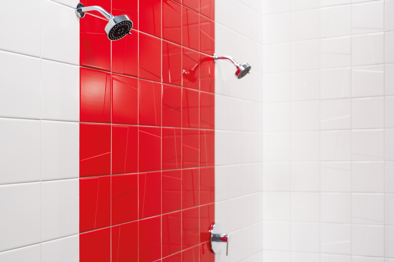 Bei dem Wandfliesen-Programm Color One von Rako bringen schräg verlaufende Relief-Fliesen Bewegung in die Fläche. Für die Gestaltung größerer Wandbereiche, bspw. bei Schwimmbädern, Gemeinschaftsräumen, Duschanlagen oder Umkleiden bieten sich mit den fünf Relief-Ausführungen neue Möglichkeiten. Strukturierte und ebene Fliesen lassen sich kombinieren, ebenso matte und glänzende Ausführungen. Color One umfasst unifarbene Grundfliesen in 24 Farbtönen sowie eine reiche Auswahl an Modul-Formaten von 15 x 15 bis 30 x 60 cm, die neue Relieffliese gibt es im Format: 20 x 20 cm in den Farben Weiß, Hellgrau, Hellbeige, Anthrazit und Rot in matt und glänzend, das Relief-Dekor in fünf verschiedenen Ausführungen.