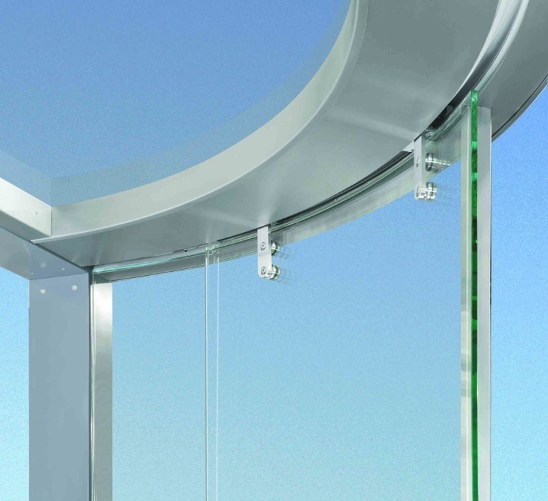 GEZE hat eine neue Variante der automatischen Ganzglas-Bogenschiebetüren entwickelt. Dabei wird der gebogene Antrieb Slimdrive SC mit dem Edelstahl-Designbeschlag GGS kombiniert. Zusammen mit dem Glasdach erhält man ein Bogenschiebetürsystem mit maximalem Lichteinfall, der Eingansbereich wird zur größtmöglichen Übergangszone zwischen Außenraum und Innenraum. Durch die spezielle Konstruktion lässt sich die Durchgangsbreite auch bei schmalen Öffnungen optimieren. Die Beschläge sind an den Rollwägen des Antriebs befestigt. Die komplett vorgefertigte Slimdrive-Antriebseinheit lässt sich unauffällig an gebogenen Pfosten-Riegel-Konstruktionen oder frei stehend montieren. Der Einbau eignet sich auch im Anschluss an Beton, Mauerwerk, Stahl- oder Glaskonstruktionen. Das Türsystem kann für Türflügelhöhen bis 2500 mm, Radien bis 3000 mm und Türflügelgewichte bis zu 120 kg realisiert werden.