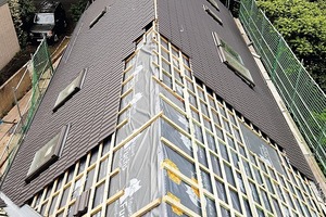 Bereits eine sehr schlanke Aufsparrendämmung verbessert den Wärmeschutz im Steildach deutlich: Bei einem Sparrenquerschnitt von z. B. 8/14 cm (die Platz bieten für 140 mm Dämmung zwischen den Sparren) und einer zusätzlichen Dämmdicke von 60 mm über den Sparren, ergibt sich ein U-Wert von ≤ 0,20 W/(m2K): ein Wert also, wie er heute im Neubau anzustreben ist. Da die Dämmarbeiten vollständig von außen durchgeführt werden, entfallen Beeinträchtigun-gen durch Lärm oder Staub im Inneren des Hauses.