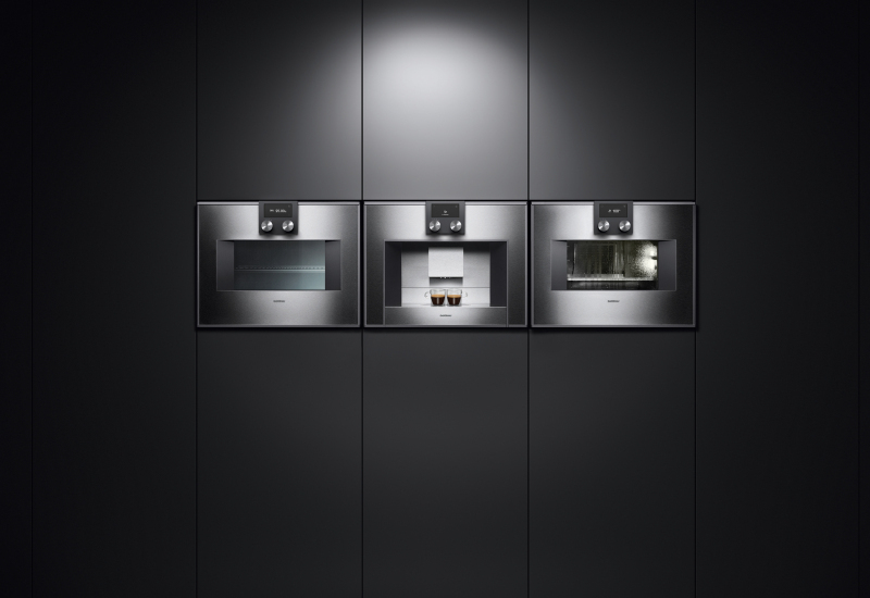 Funktionalität sowie eine prägnante Formensprache kennzeichnen die neue Backofen-Serie 400. Mit ihrem skulptularen Design wirken die bis zu 76 cm breiten Geräte aus massivem Edelstahl präsent, ohne den Raum zu dominieren. Eine Besonderheit ist ihr Einbau mit 47 mm Frontüberstand im Zusammenspiel mit den blendenlosen Oberflächen und grifflosen Türen. Hinzu kommt ein Bedienmodul mit TFT-Touch-Display. Dieses zeichnet sich durch seine einfache und intuitive Handhabung aus und erlaubt neue Funktionen, wie etwa eine automatische Türöffnung. Die 76 oder 60 cm breiten Geräte verfügen über Edelstahl hinterlegte Glasfronten. Ihre Türen lassen sich in einem Winkel von 180° öffnen.