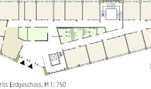 Das Verwaltungsgebäude wurde in jedem Geschoss in zwei Nutzungseinheiten geteilt, jede erhält eine Lüftungsanlage. Die Erschließungszone kann als Überströmzone für die Luft genutzt werden. Insgesamt erhält Haus A fünf Lüftungsanlagen mit WRG. Die Zuluftmengen werden gering gehalten, alle Räume sind natürlich zu belüften. Die Lüftungsanlagen sind mit reversibel zu betreibenden Wärmetauschern ausgestattet, die die Luft erwärmen oder vorkühlen können.